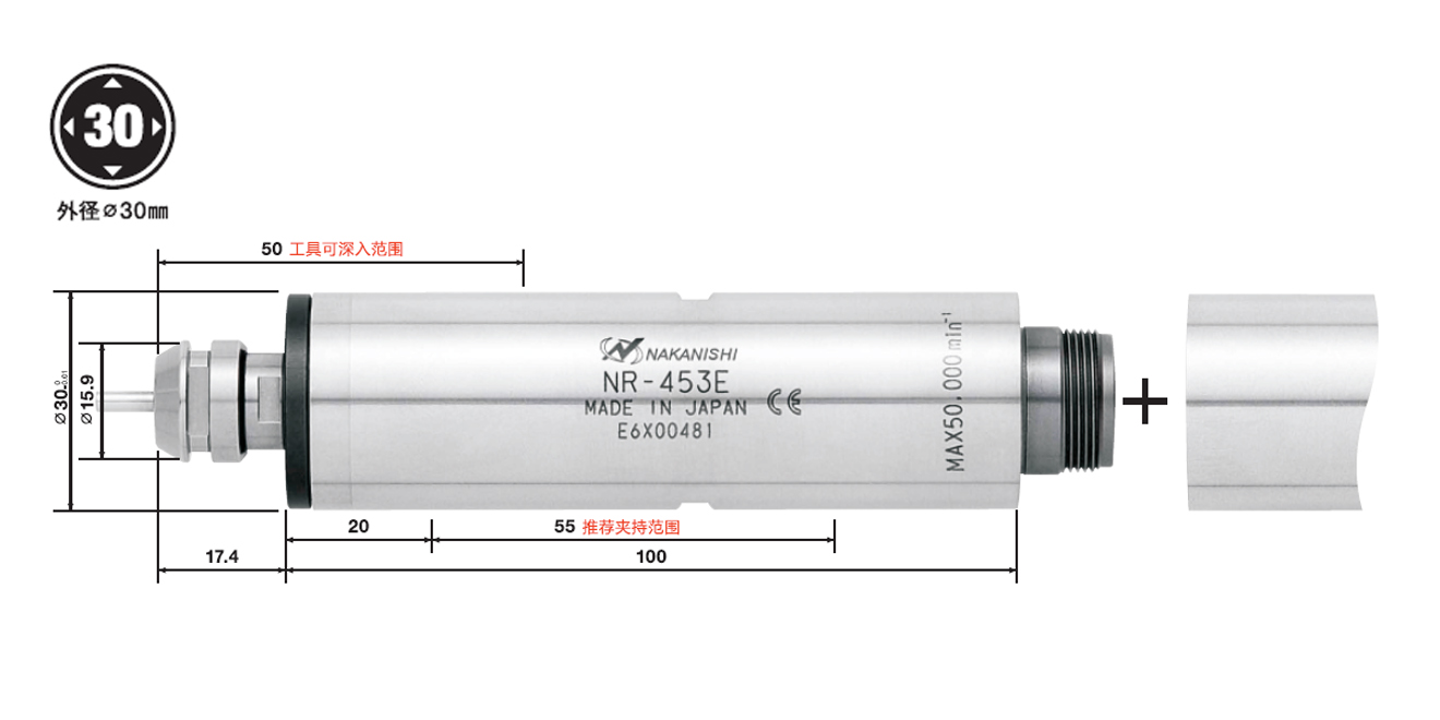 | NR-403E | 7847 | φ30 mm | 1μm以內(nèi) | 40000 min-1 | CHK系列(φ0.5~φ6.35mm) | 440 g |