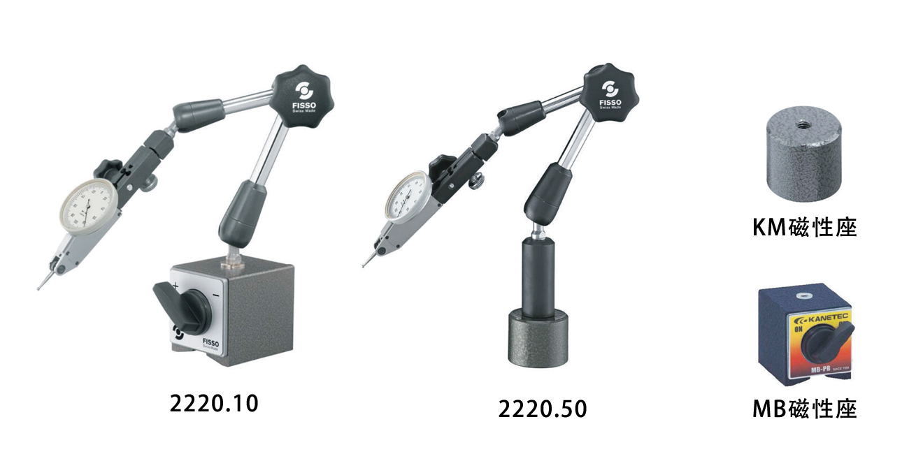 2200-20F僅為萬(wàn)向關(guān)節(jié)臂(F表示帶微調(diào)裝置);2200-20F+MC表示萬(wàn)向關(guān)節(jié)臂配置MC開(kāi)關(guān)磁力座,外觀尺寸與M相同,僅吸附力不同