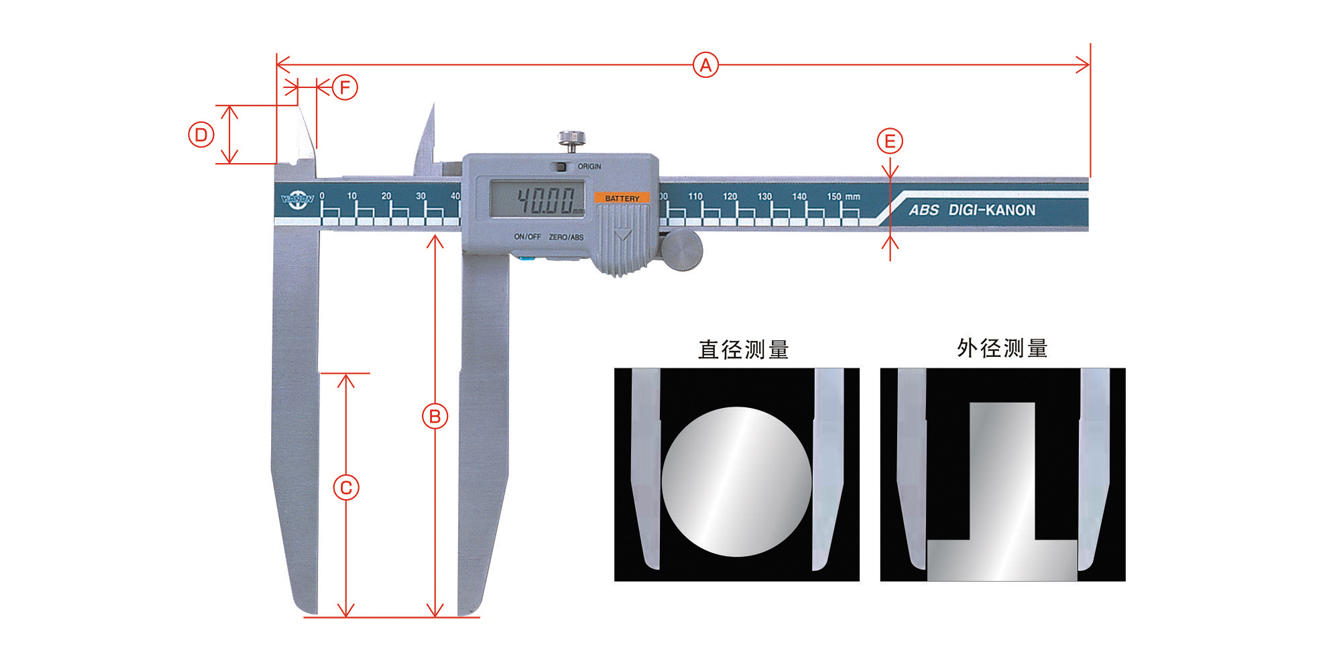 • 帶有“長爪”的長爪卡尺,非常適合測量大直徑管道等