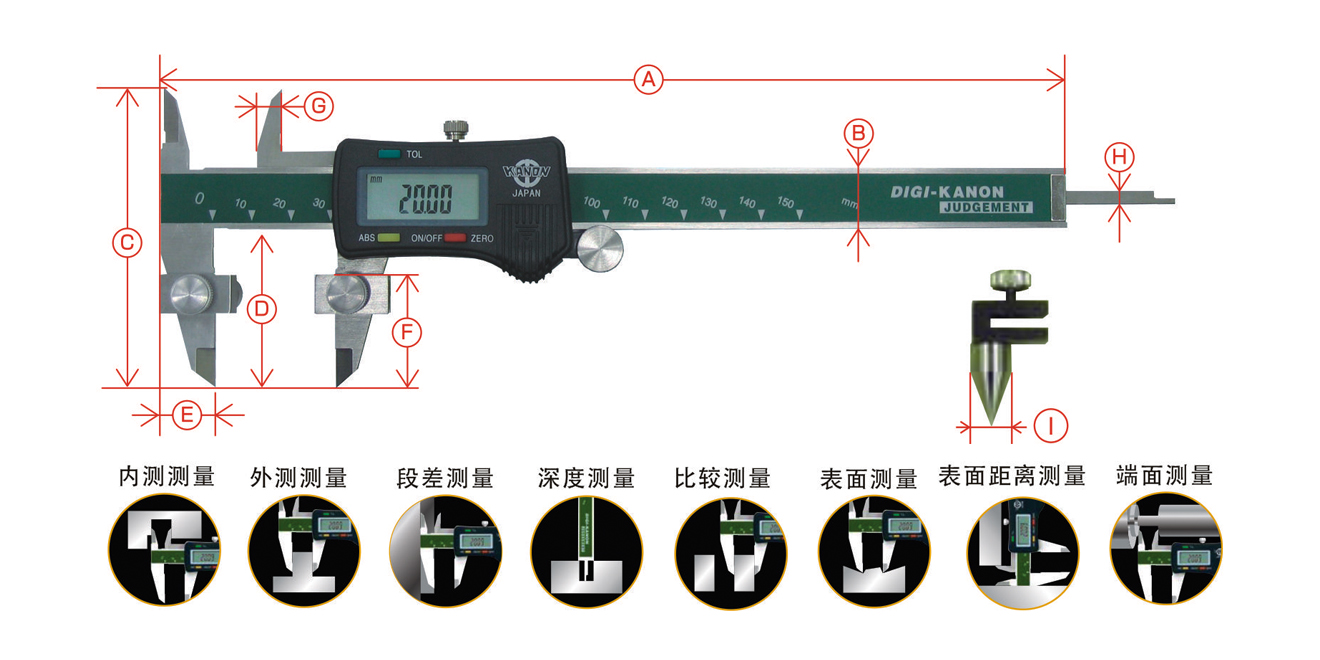 • 可測量零件的外徑、內徑、長度、寬度、厚度、深度和孔徑等尺寸