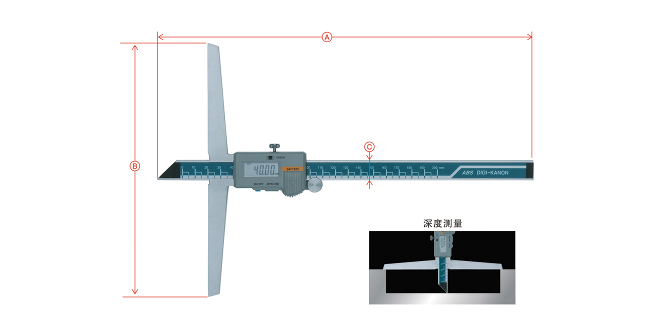 • 適合測量大直徑孔的深度